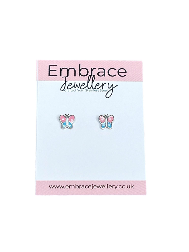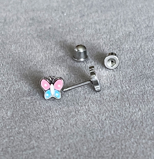 Mini Butterfly Stud Earrings – Stainless Steel & Enamel with Comfort Screw-On Backs