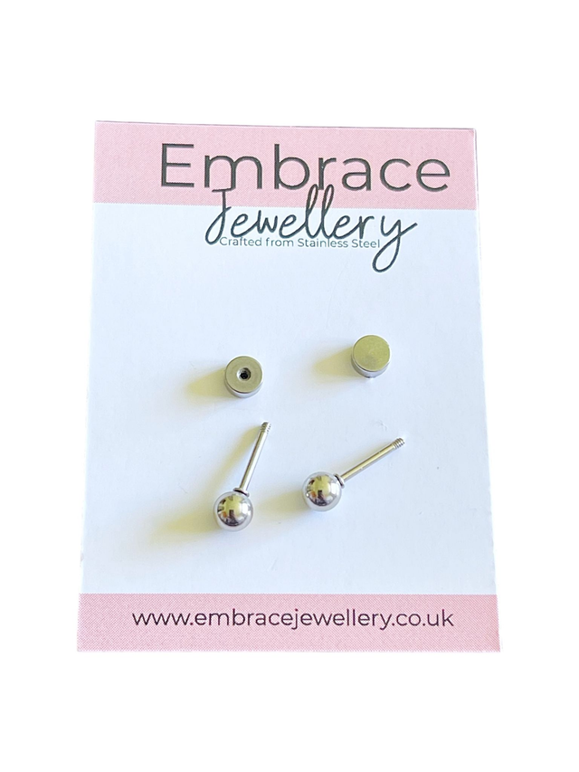 Timeless and versatile, these classic 4mm ball studs are crafted from high-quality stainless steel and finished with flat twist-on backs that fully enclose the post end—offering secure, snag-free comfort for everyday wear.