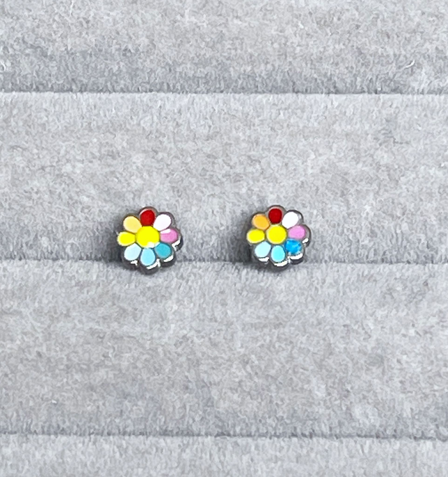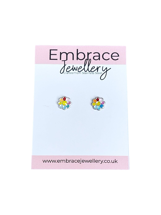 Mini Flower Stud Earrings – Colourful Enamel on Stainless Steel with Twist-On Comfort Backs