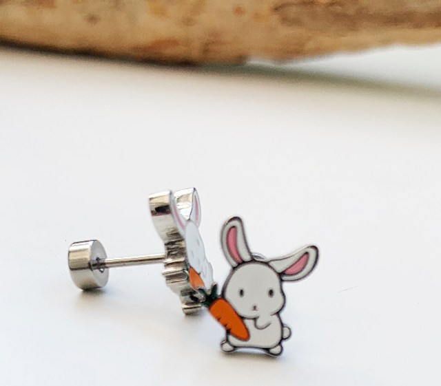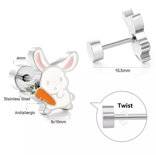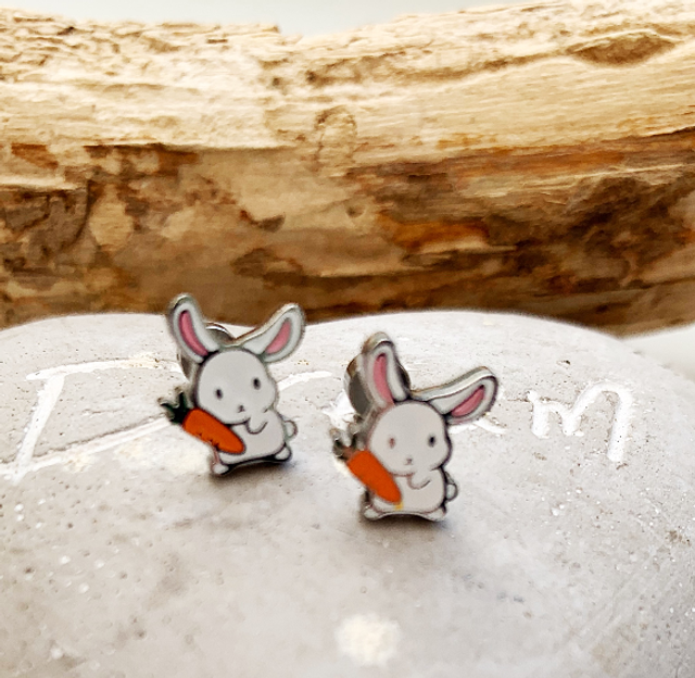 Enamel Rabbit Stainless Steel Stud Earrings – Twist Back