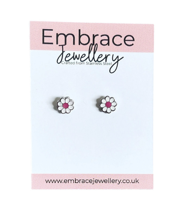 Mini Daisy Stainless Steel & Enamel Stud Earrings