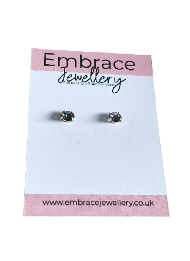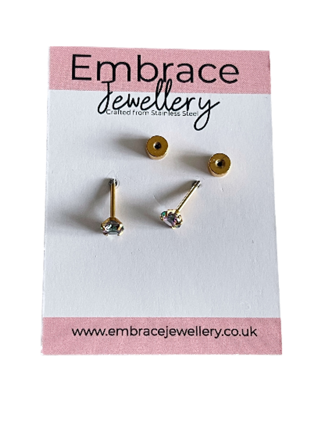 Gold Plated Stainless Steel Mini Comfort Back Studs – Dark Iridescent