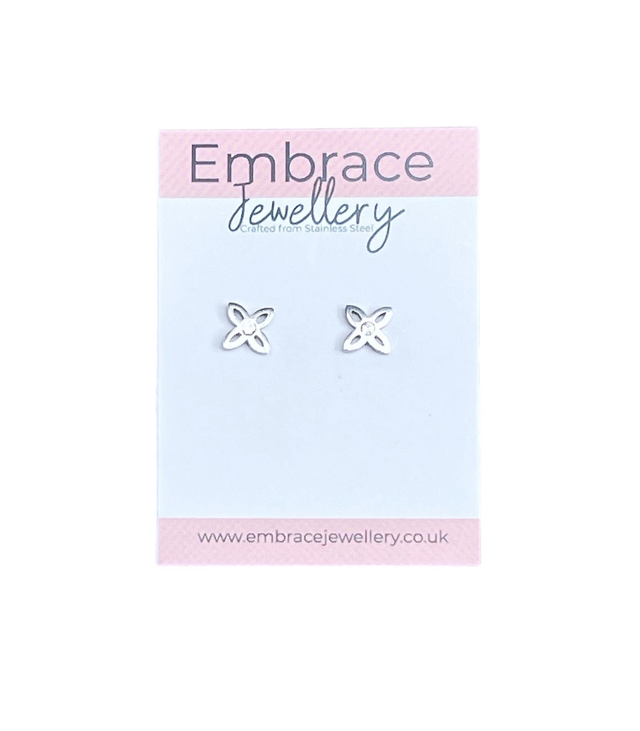 Elegant and understated, these stainless steel flower studs feature a sparkling cubic zirconia centre for a subtle touch of shimmer. Measuring approx. 6mm, they’re the perfect everyday pair—lightweight, durable, and effortlessly stylish.