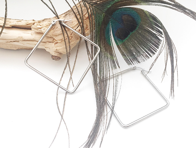 Large 60mm Square Shaped Stainless Steel Hoop Earrings These bold hoop earrings feature a modern square shape, crafted from stainless steel for lasting shine and durability. Measuring 60mm across, they offer a sleek statement look while remaining lightweight and comfortable for all-day wear.