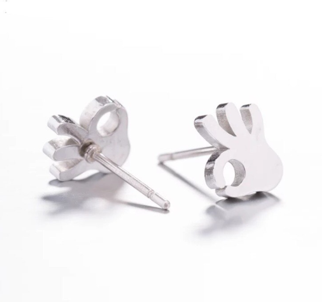 These stainless steel studs feature a hand making the classic ‘okay’ gesture—subtle, expressive, and full of personality. Measuring approximately 9mm x 8mm, they’re lightweight and comfortable—ideal for everyday wear or gifting with a playful twist.