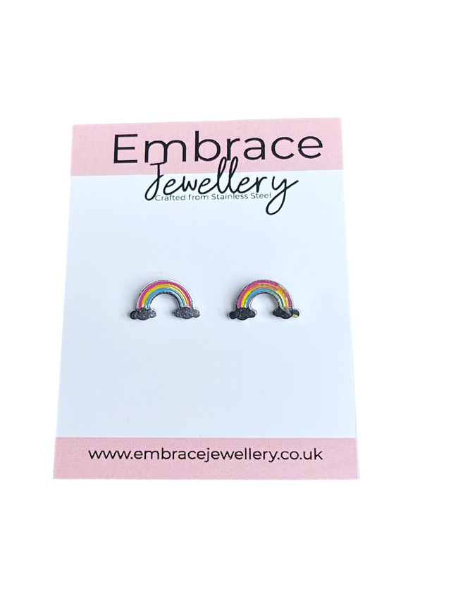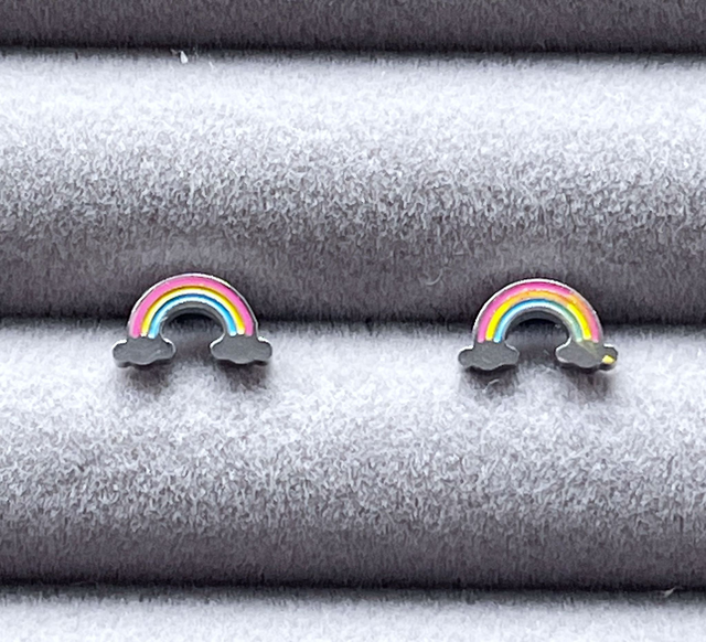 Add a cheerful pop of colour with these super cute rainbow studs, crafted from high-quality stainless steel and finished with a press back fastener that fully covers the post—making them ultra-comfy, safe, and snag-free.