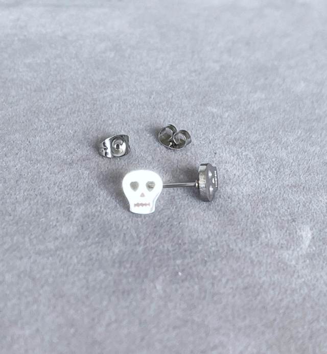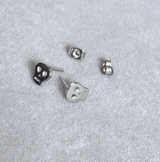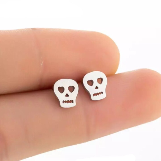 These stainless steel studs feature a small skull design with a playful, stylized look that’s often associated with candy skulls. Measuring approximately 8mm x 7mm, they’re lightweight and comfortable—perfect for Halloween, or for adding a fun edge to your everyday style.