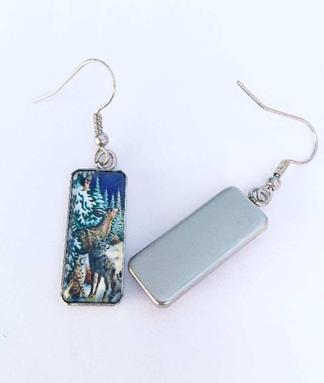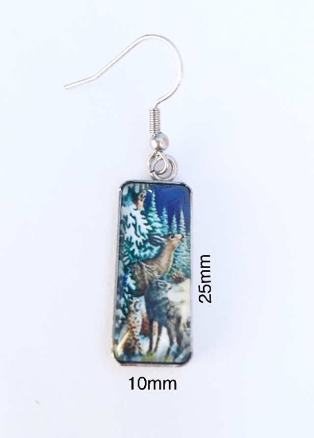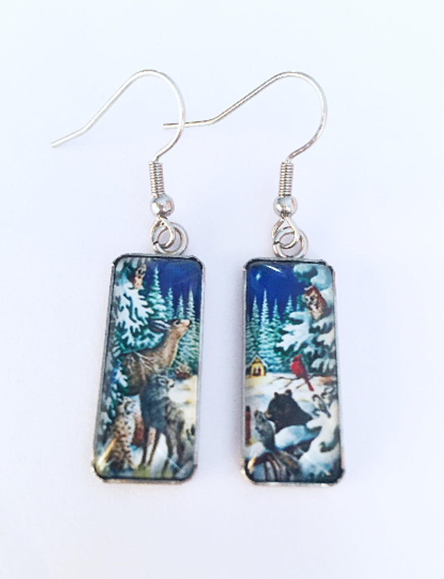 Stainless Steel Snowy Animal Scene Drop Earrings With Rubber Stoppers for Safety and Comfort