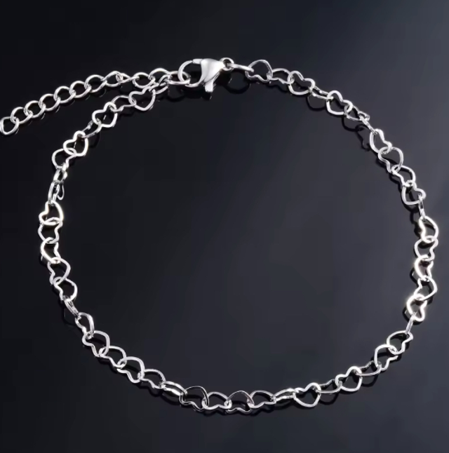 Add a touch of elegance to any outfit with this beautifully crafted heart link bracelet. Made from durable stainless steel, its delicate heart-shaped links offer timeless charm and subtle sophistication.
