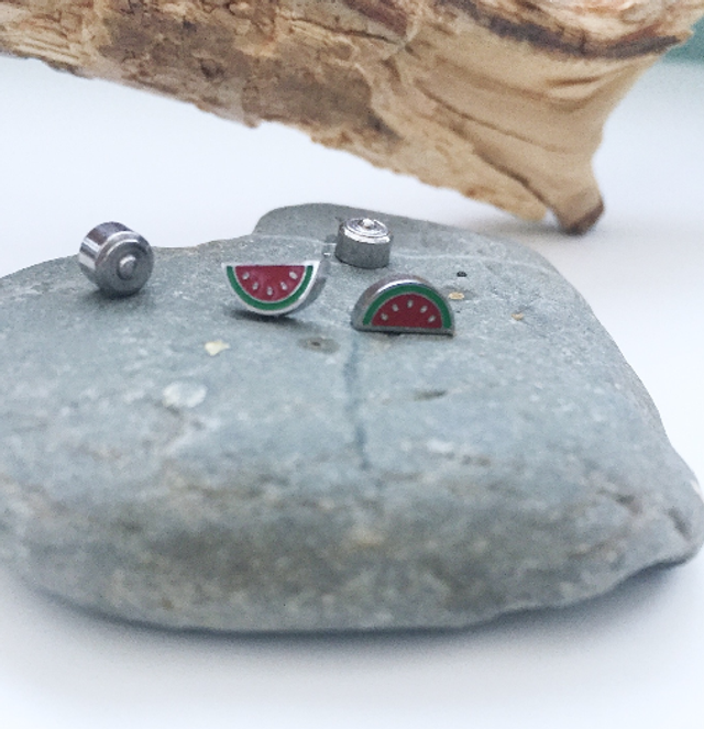 Watermelon Stainless Steel Stud Earrings – Press Back