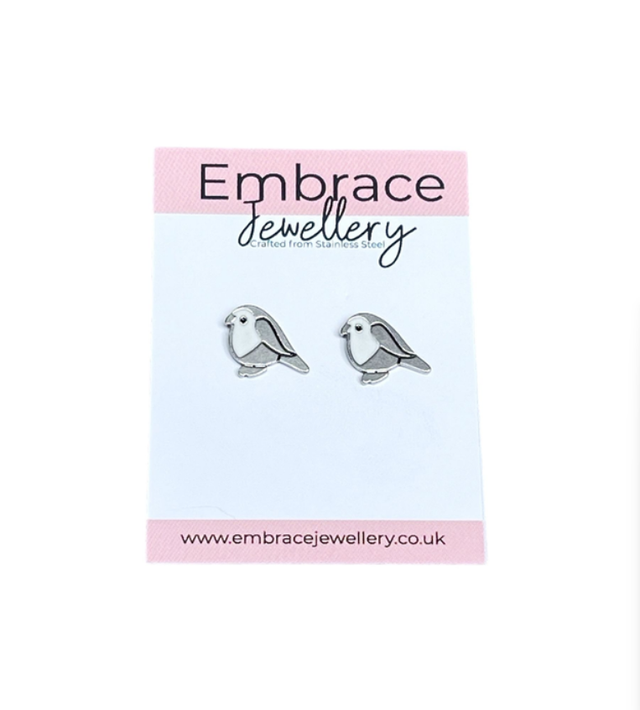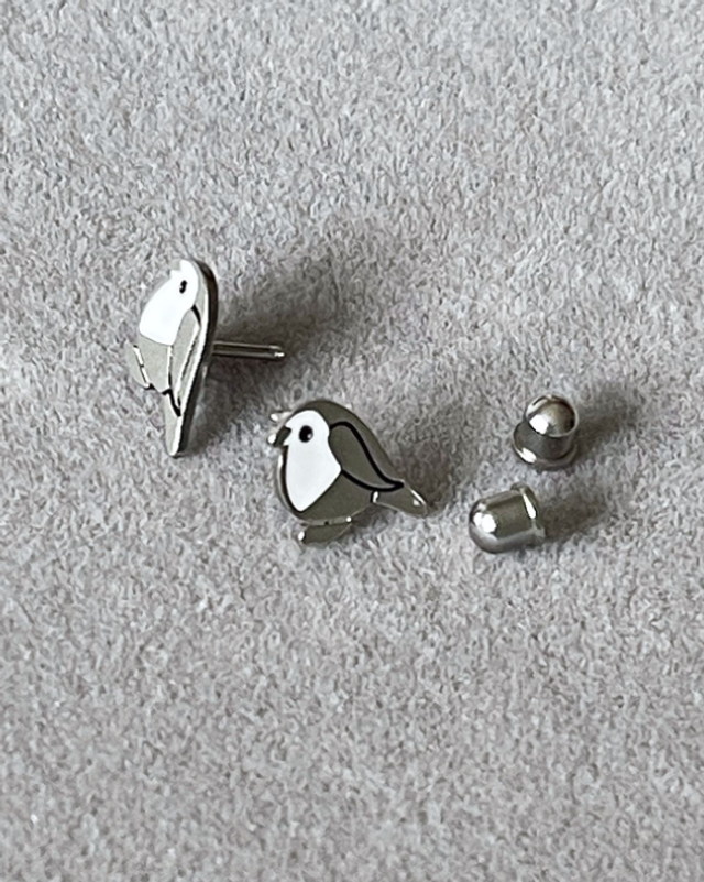 Graceful and charming, these stainless steel bird earrings feature a white enamel chest that adds a delicate contrast to the polished metal. Measuring approximately 10mm x 10mm, they’re the perfect size for everyday wear—subtle yet full of character. Finished with secure twist-on dome-shaped back fasteners, they offer a comfortable and reliable fit. Lightweight and elegant, these earrings bring a nature-inspired touch to any look.