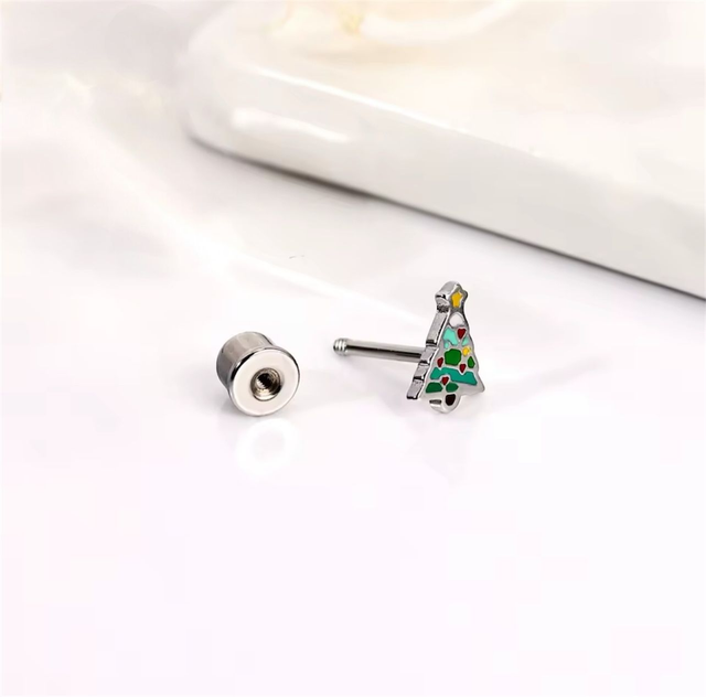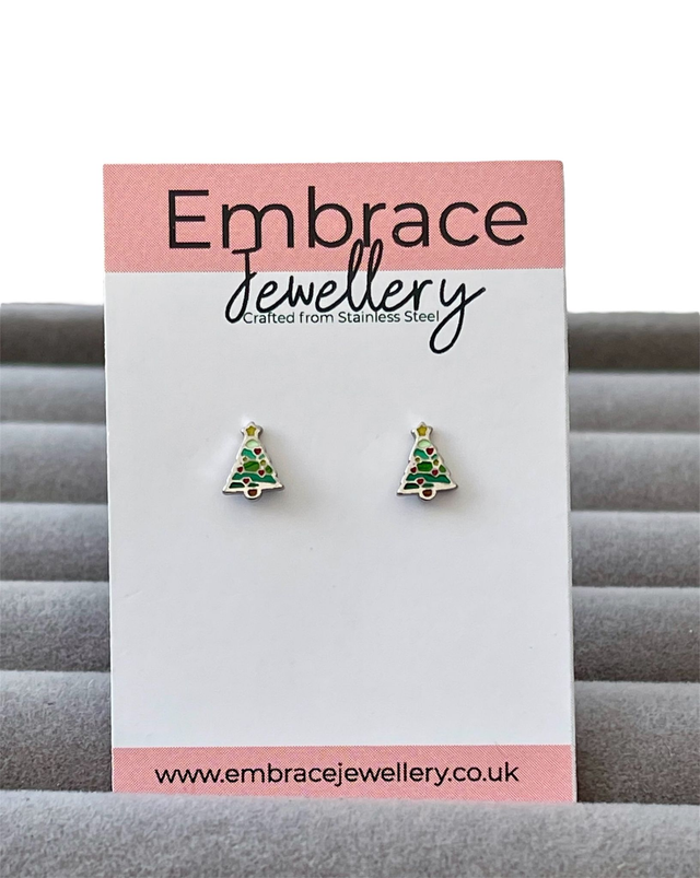 These festive Christmas tree shaped studs feature a colourful enamel finish over stainless steel, adding a cheerful pop of colour with a classic seasonal design. The twist-on dome shaped comfort back fastener keeps them secure, comfortable, and fully enclosed — safe and snag-free. They’re designed for all-day comfort, making them perfect for everyday wear throughout the holiday season.