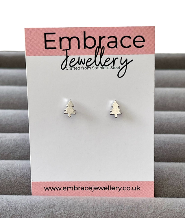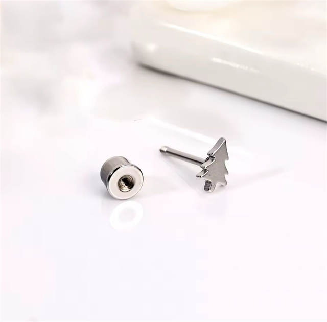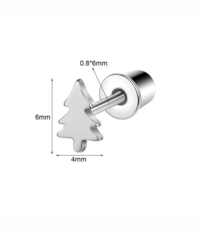 These delicate Christmas tree shaped studs are crafted from stainless steel with a smooth, polished finish. Their clean design adds a gentle festive touch in a classic seasonal style. The twist-on dome shaped comfort back fastener keeps them secure, comfortable, and fully enclosed — safe and snag-free. They’re designed for all-day comfort, making them perfect for everyday wear throughout the holiday season.