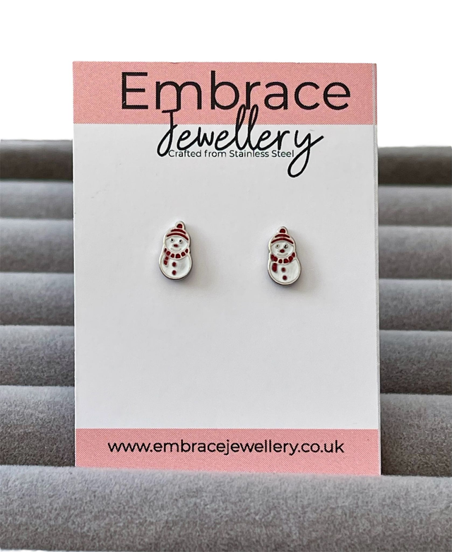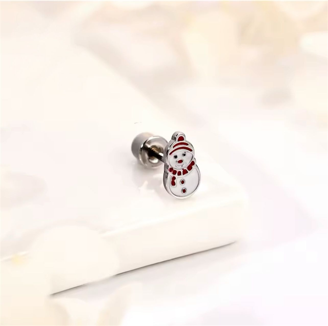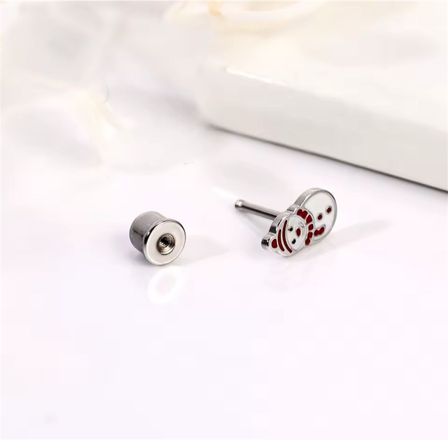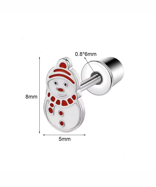 These cute snowman shaped studs feature a glossy red and white enamel finish over stainless steel, adding a cheerful winter touch with a classic festive feel. The twist-on dome back fastener keeps them secure, comfortable, and fully enclosed — safe and snag-free. They’re designed for all-day comfort, making them perfect for everyday wear throughout the holiday season.
