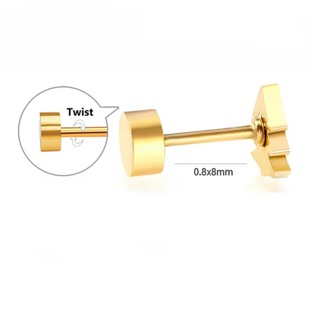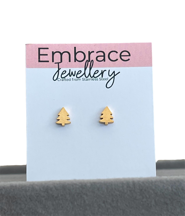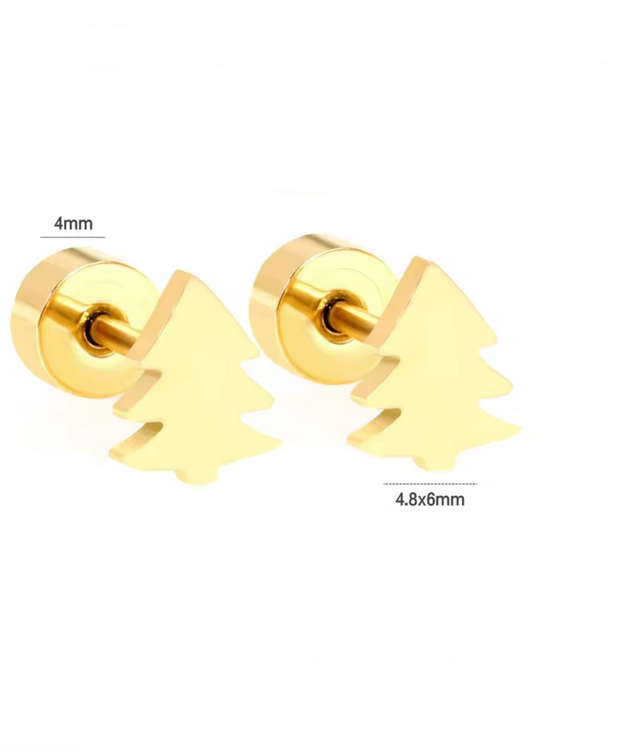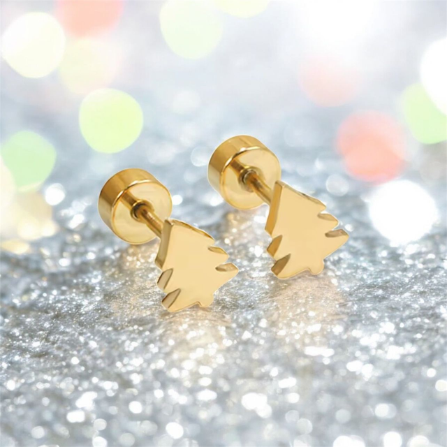 These mini Christmas tree studs are crafted from stainless steel with a durable gold PVD coating and feature a smooth, polished finish. The twist-on flat back comfort fastener keeps them secure, comfortable, and fully enclosed — safe and snag-free. They’re designed for all-day comfort, making them perfect for everyday wear throughout the holiday season.