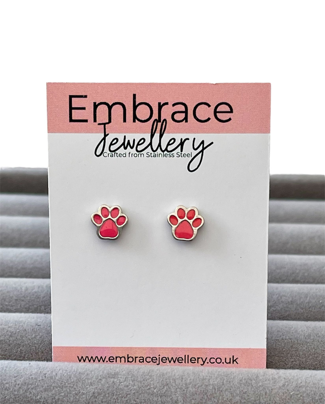 These adorable paw print mini studs are crafted from stainless steel and finished with soft pink enamel capturing the charm of tiny toe beans. The twist-on dome back fasteners keep them secure, comfortable, and fully enclosed — safe and snag-free. A playful everyday pair for animal lovers of all ages.