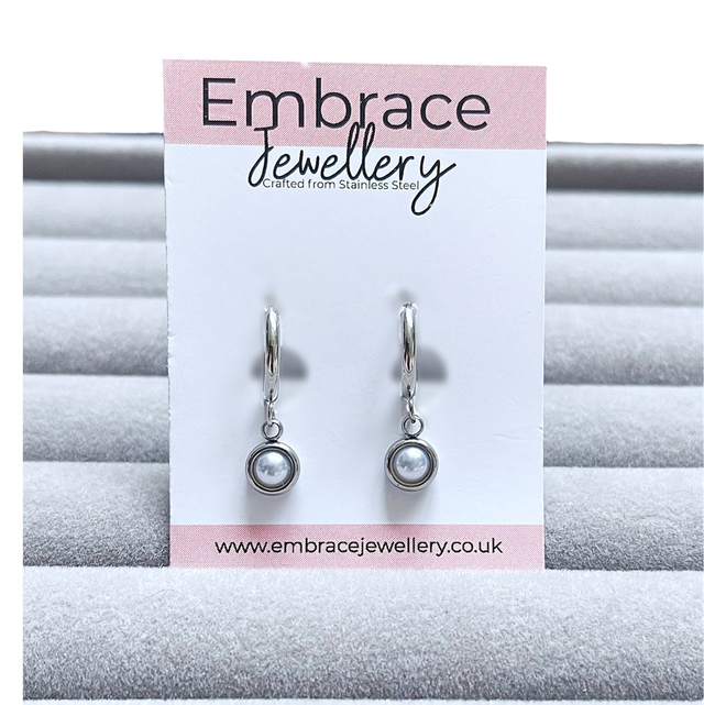 These classic small pearl huggies are crafted from stainless steel, featuring a single pearl for a timeless, elegant finish. The huggie hoop closure offers a smooth, comfortable fit, making them perfect for everyday wear or dressing up.
